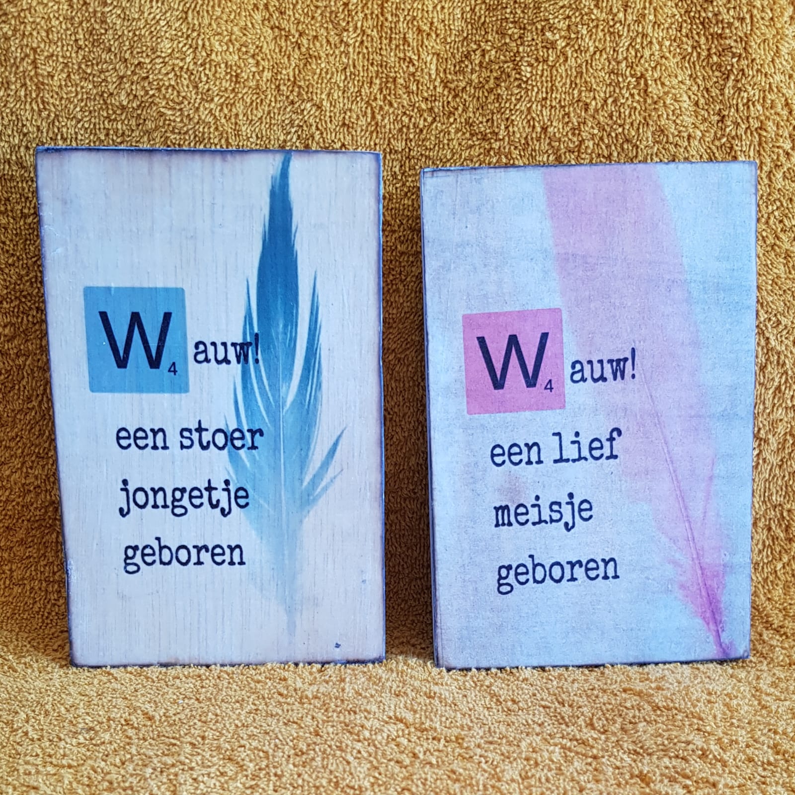 Wauw! Een stoer jongetje geboren. / Wauw! Een lief meisje geboren.